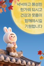 Áñ°Å¿î ¸íÀý Ãß¼®ÀÔ´Ï´Ù. dz¼ºÇÑ ÇѰ¡À§ º¸¸§´Þó·³ ´ç½ÅÀÇ ¸¶À½µµ dz¼ºÇØÁ³À¸¸é ÁÁ°Ú½À´Ï´Ù. Ãß¼®¿¬ÈÞ¸¸ÅÀº °ÆÁ¤±Ù½É Àá½Ã ³»·Á³õ°í, »ç¶û°¡µæ ³Ë³ËÇÑ ¸¶À½À¸·Î Áñ°Å¿î ÇѰ¡À§ º¸³»½Ã±æ ±â¿øÇÕ´Ï´Ù.