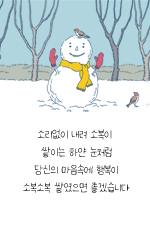 ¼Ò¸®¾øÀÌ ³»·Á ¼Òº¹ÀÌ ½×ÀÌ´Â ÇÏ¾á ´«Ã³·³ ÇູÀÌ ´ç½ÅÀÇ ¸¶À½¼Ó¿¡ ¼Òº¹¼Òº¹ ½×¿´À¸¸é ÁÁ°Ú½À´Ï´Ù. Ã߿¾¾¿¡ °Ç°ÇϽðí, ³¯¾¾´Â ÃäÁö¸¸ ¸¶À½Àº ´Ã µû¶æÇÑ ´ç½ÅÀ̱⸦ ºô¾îº¾´Ï´Ù. ¾ðÁ¦³ª ´ç½ÅÀÇ »î¿¡ ÇູÀÌ °¡µæÇÏ½Ã±æ ¹Ù·¡¿ä.